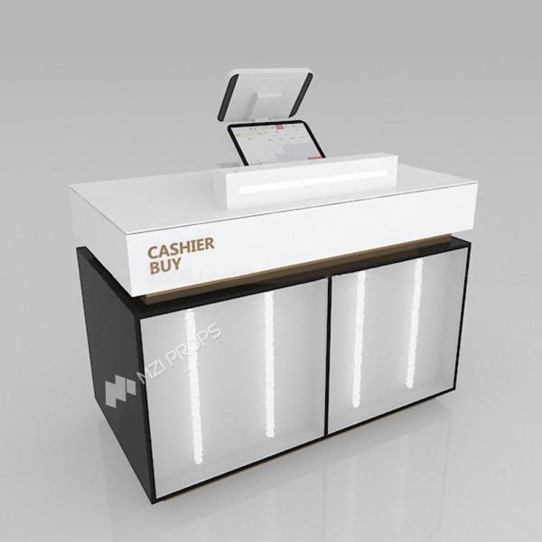 Customized Skincare Shop Checkout Counter Platinum Wooden Cash Register For Visual Merchandising Cosmetic Store Fixtures And Premium Store Table Images |
